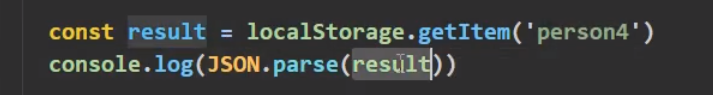 由于对象存储时用JSON.stringify()把它转化成了字符串的形式,所以这边要把它用JSON.parse()解析出来变成对象类型