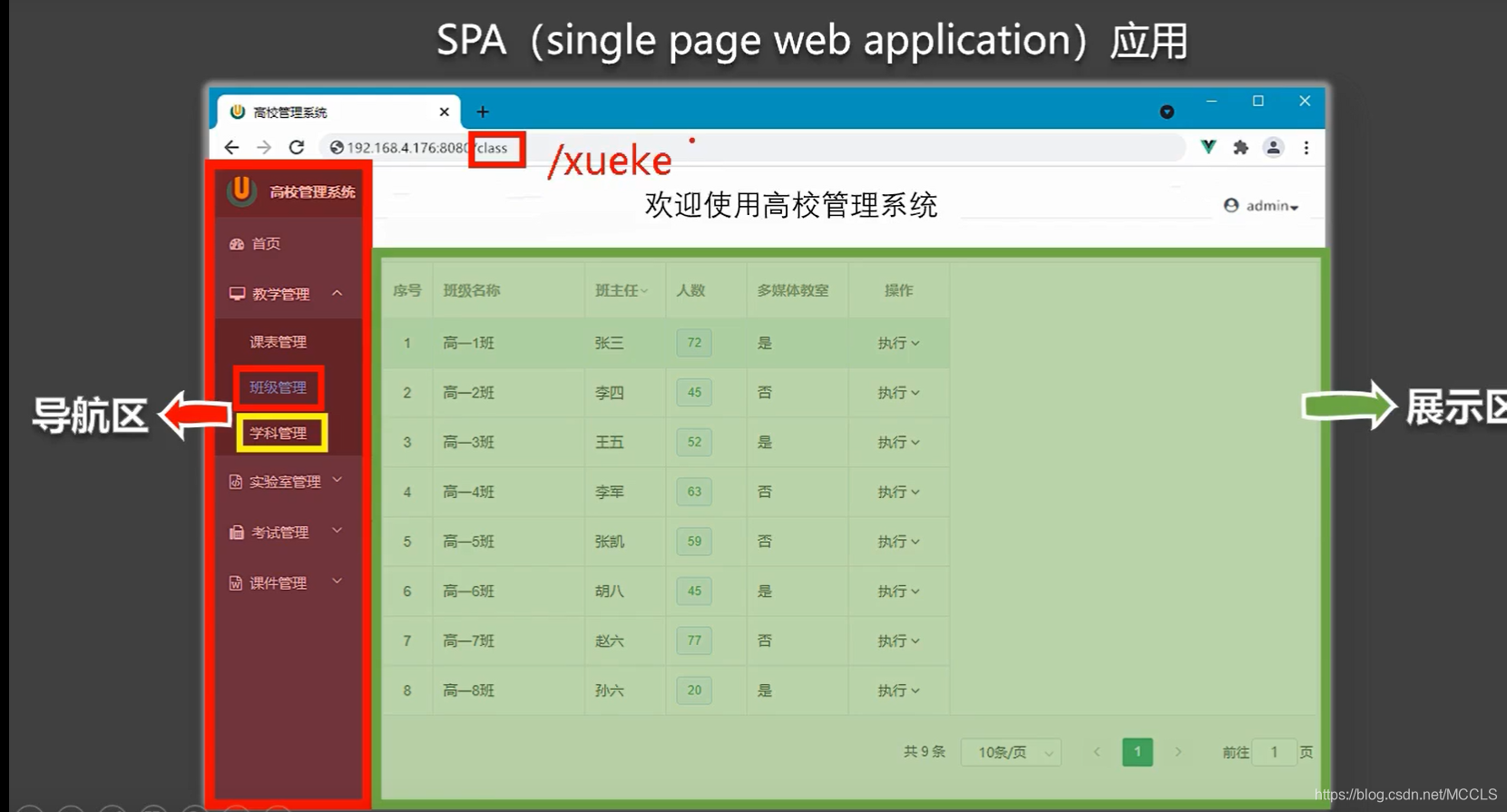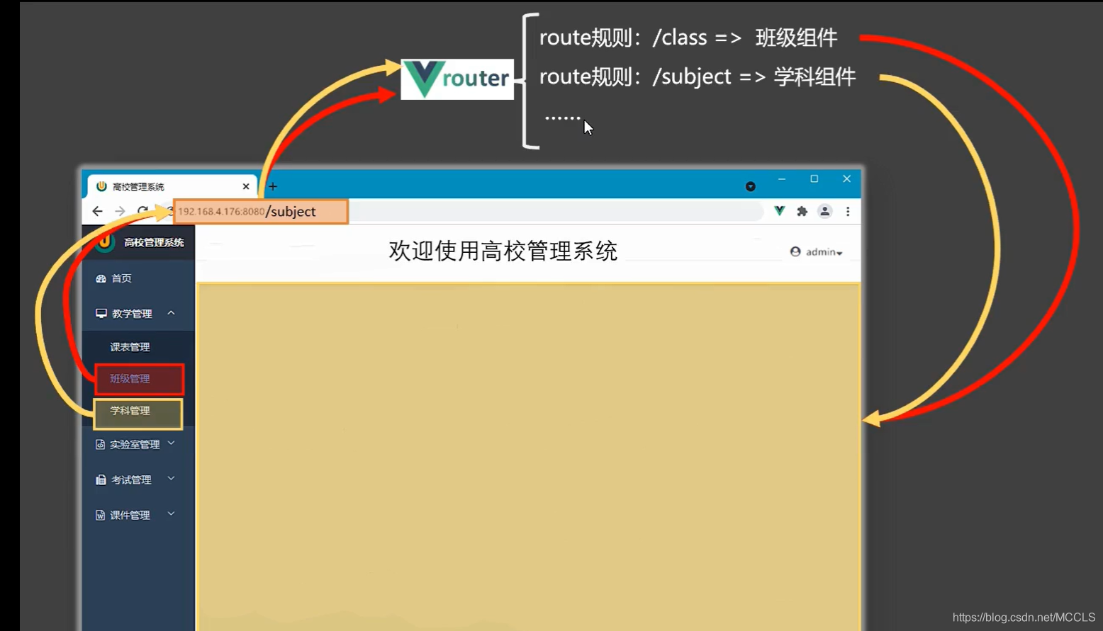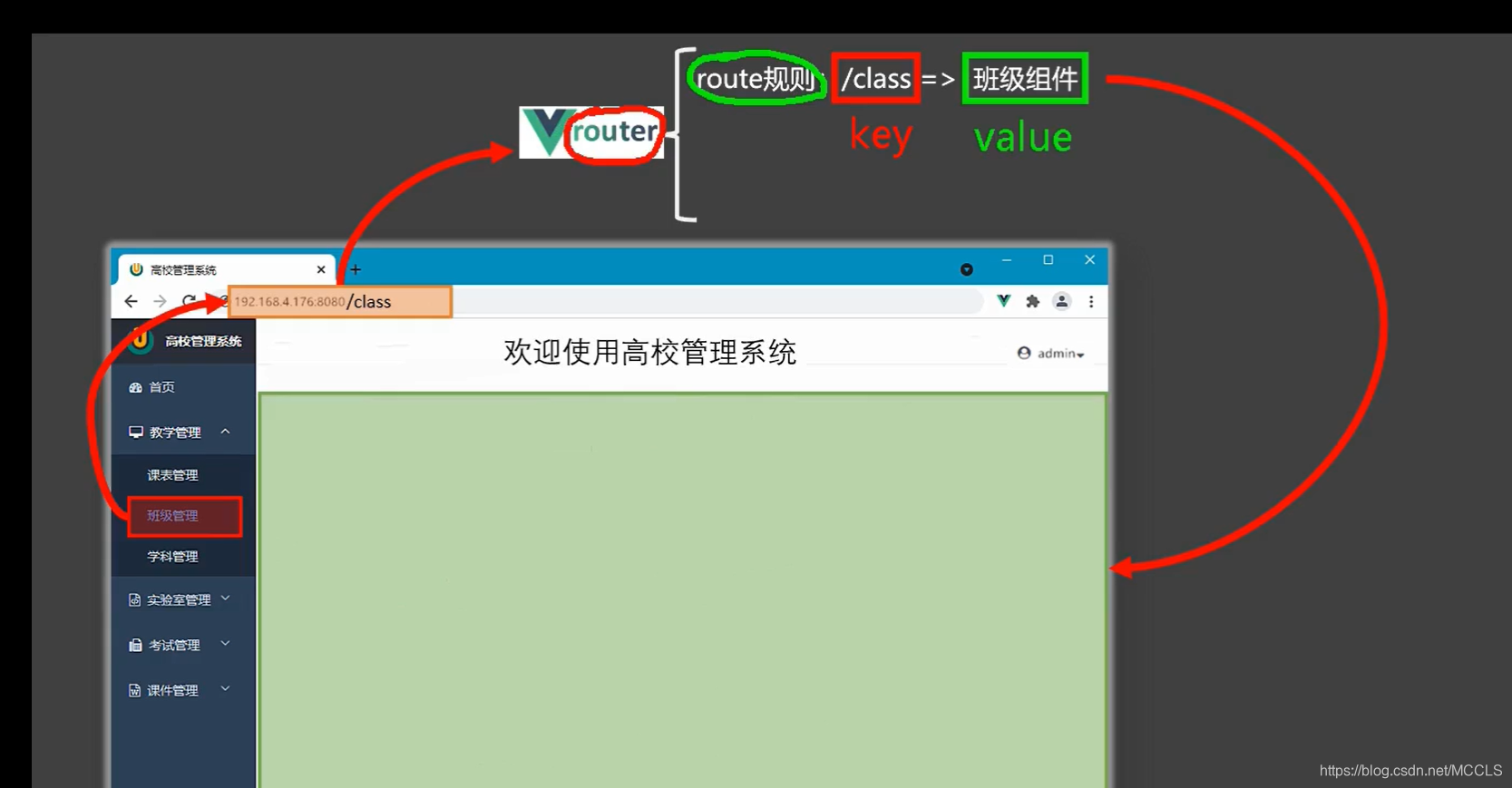 原理:打你点击了导航栏就会发生路径的改变.而路径一改变而一直监视路径的router就会监测的到,然后就会读取你的路径信息与你配置的路由规则进行匹配,如果key匹配上了就会把使用对应组件显示在页面对应位置上