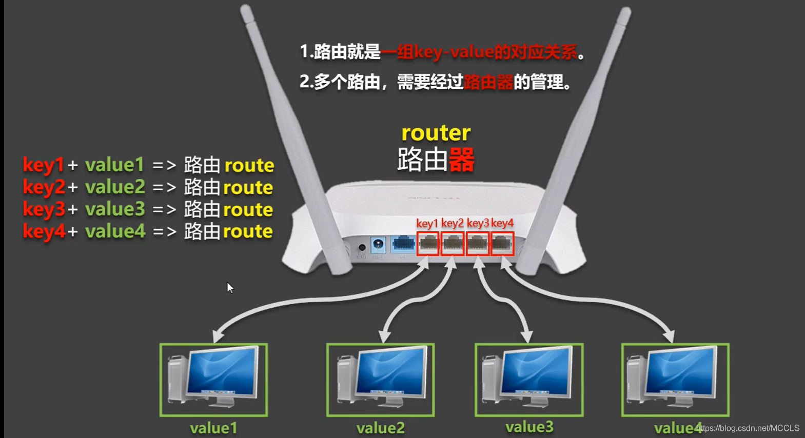 key+value就是一路由即route多个路由由一个路由器(router)管理