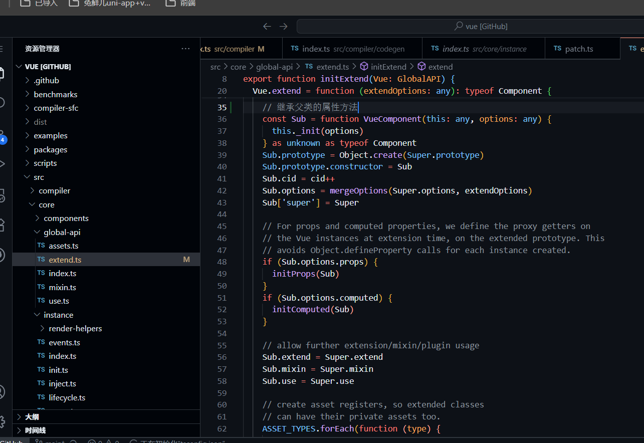 - 所有的组件创建时都会调用vue.extend方法进行创建。