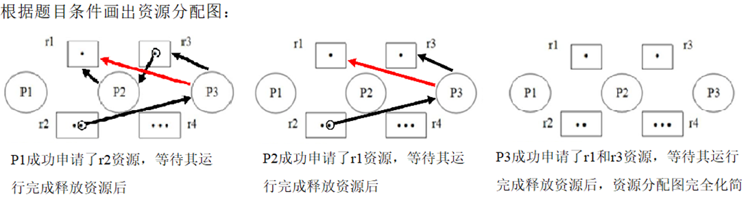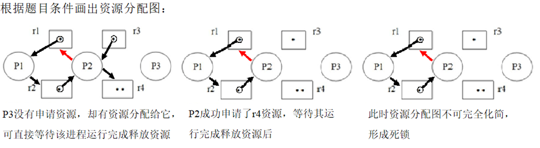 - 死锁定理描述为死锁的充分必要条件是当且仅当当前状态的资源分配图是不可完全化简的