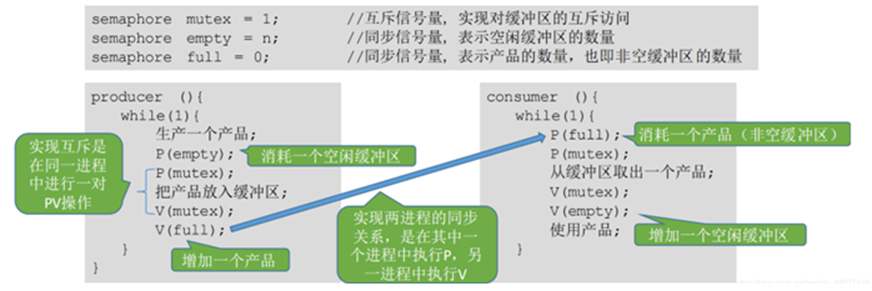同步互斥机制使用不当而产生死锁的现象:P1和P2先进行互斥信号量P操作,再进行同步信号量P操作