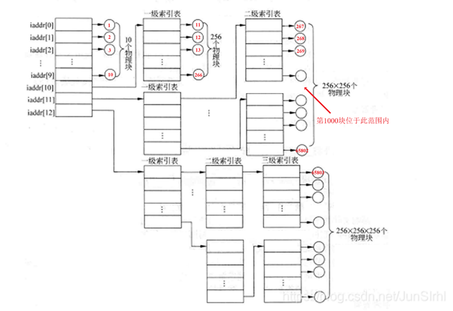 例题2:某文件系统的磁盘块大小为212B,磁盘容量为239B,当文件系统进行格式化以后,可用的存储块数量是2^27(=2^39B/2^12B)