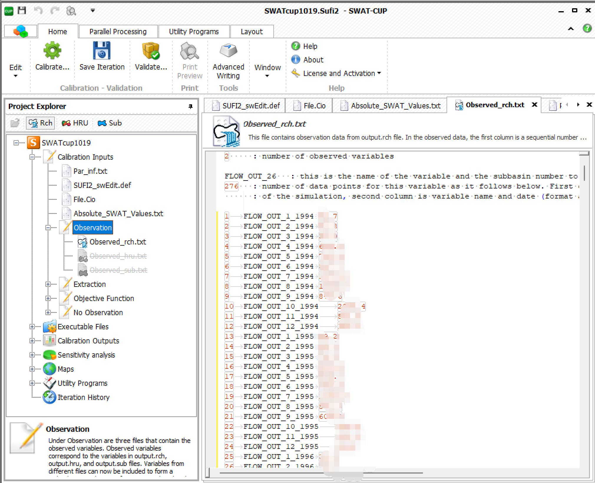 最终 txt 的总行数等于起止年月之间包含的全部月份数,已经按时间顺序排好,直接可以作为 SWAT-CUP 的输入文件。
