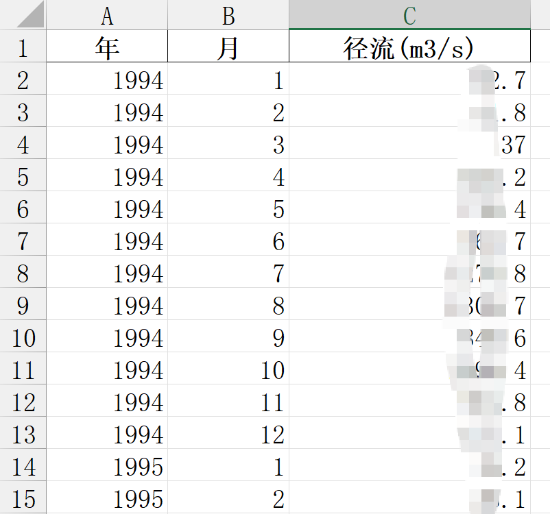 图2:代码所需的excel格式(可以有年月,不是必须,只有径流列也可以生成txt,不过要按日期排序)