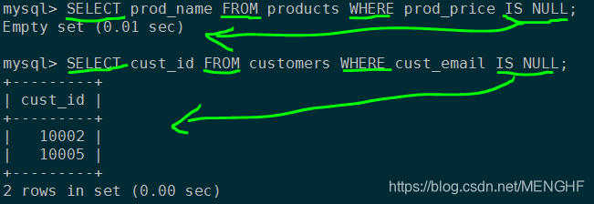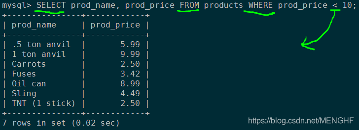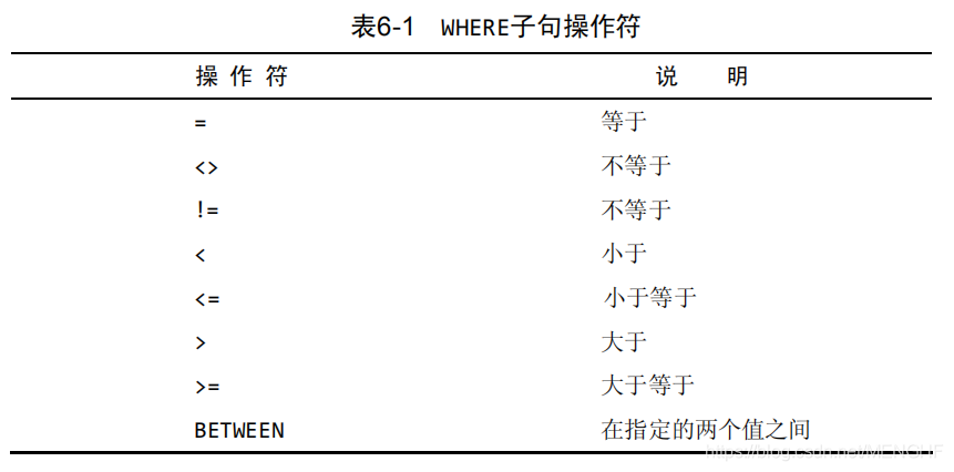 场景:由于数据库的规模大小不一,所以通常不需要也不必要检索所有的行,因此通过WHERE子句进行过滤