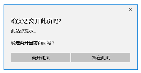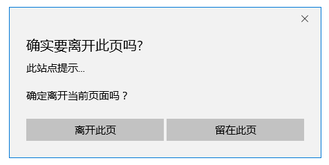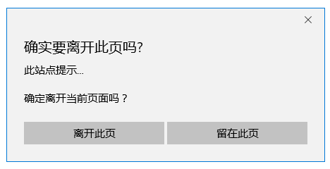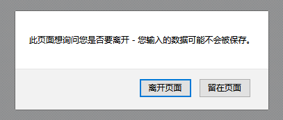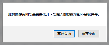 用法:onbeforeunload 事件在即将离开当前页面(刷新或关闭)时触发。该事件可用于弹出对话框,提示用户是继续浏览页面还是离开当前页面。对话框默认的提示信息根据不同的浏览器有所不同,标准的信息类似 "确定要离开此页吗?"。该信息不能删除。但你可以自定义一些消息提示与标准信息一起显示在对话框。注意: 在 Firefox 浏览器中,只显示默认提醒信息(不显示自定义信息)。
