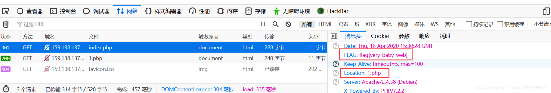 这是我们F12进入开发者模式,进入网络选项卡,发现有Index.php的文件,找到flag