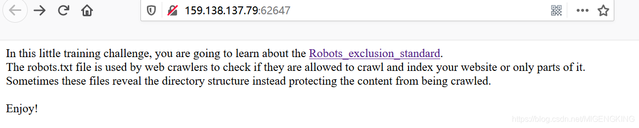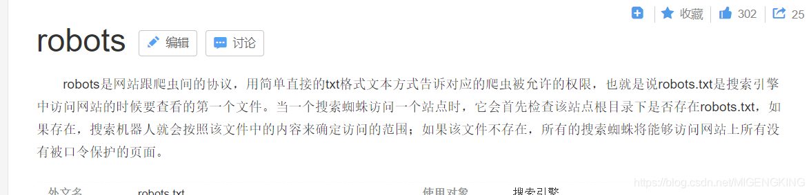 打开链接,大概意思就是说robots.txt web爬虫用来检测是否允许其搜索你的网站