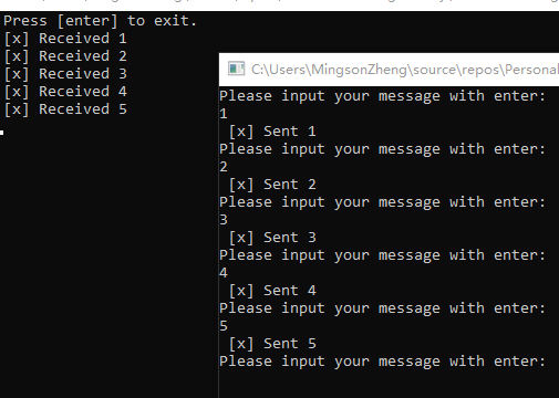 Console.WriteLine(" [x] Sent {0}", message);