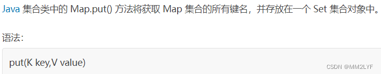 - value:是要保存到 Map 集合中对应键名的键值对象。