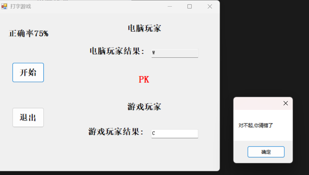 MessageBox.Show("正确率为0,请点击「退出」重新游戏!");