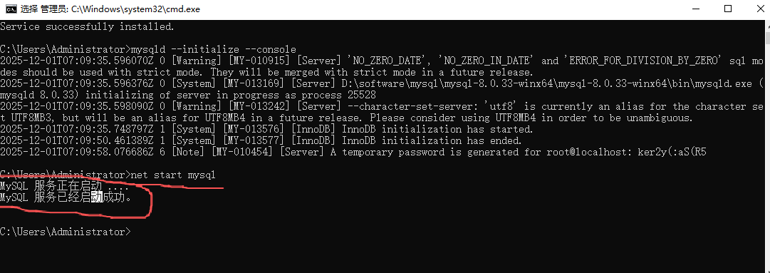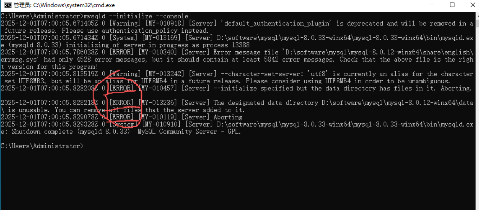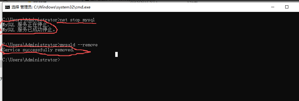 9. 如果执行后,出现Error错误,代表本次安装失败了,首先需要通过指令移除掉:mysqld --remove