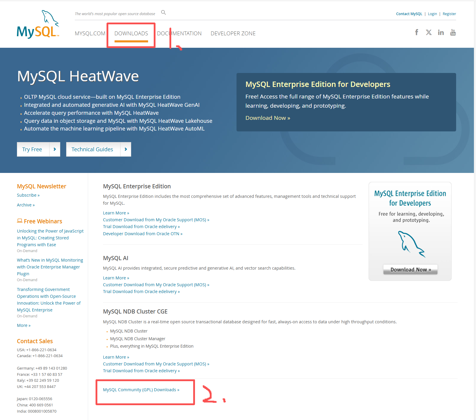 首先,去数据库的官网http://www.mysql.com下载MySQL。