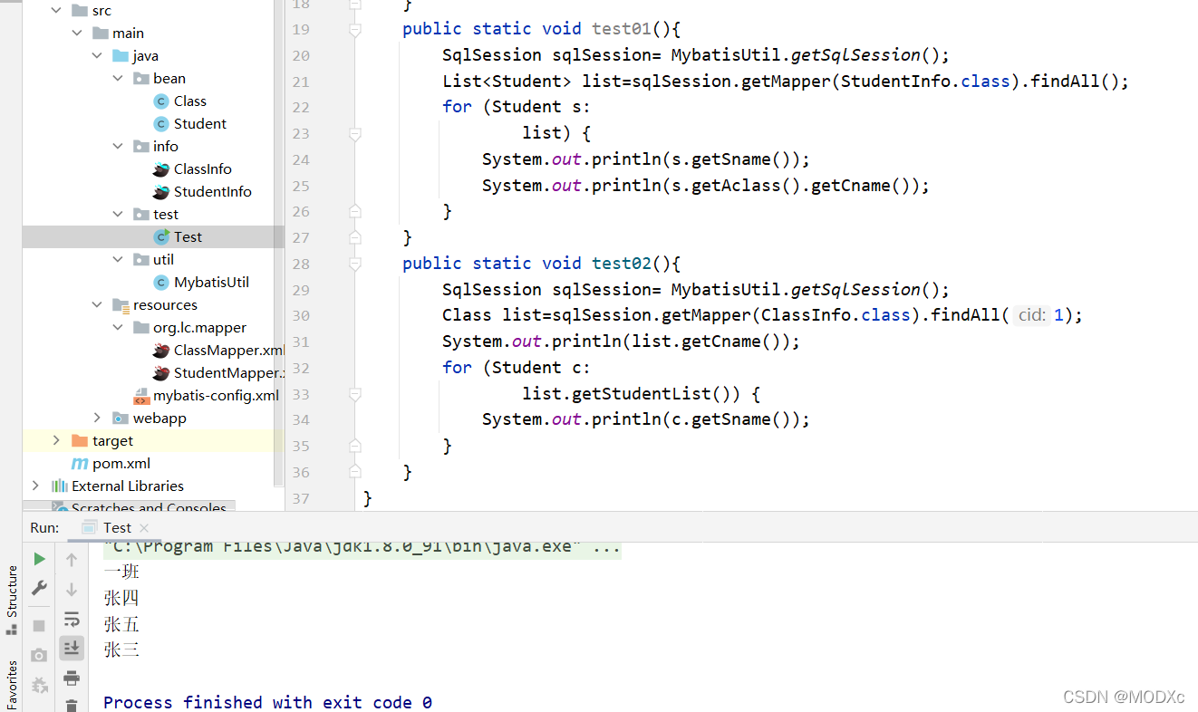 本文介绍了如何使用MyBatis框架实现数据库中一对多和多对一的关系映射。通过创建student和class两个表作为示例,展示了数据库结构和实体类的设计。同时,提供了MyBatis的配置文件,包括总配置、学生和班级的Mapper接口,以及查询所有学生和班级的SQL语句。最后,给出了测试类的简单说明。