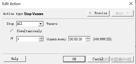 与 Start Vusers相似,全部结束和指定时间结束的虚拟用户数