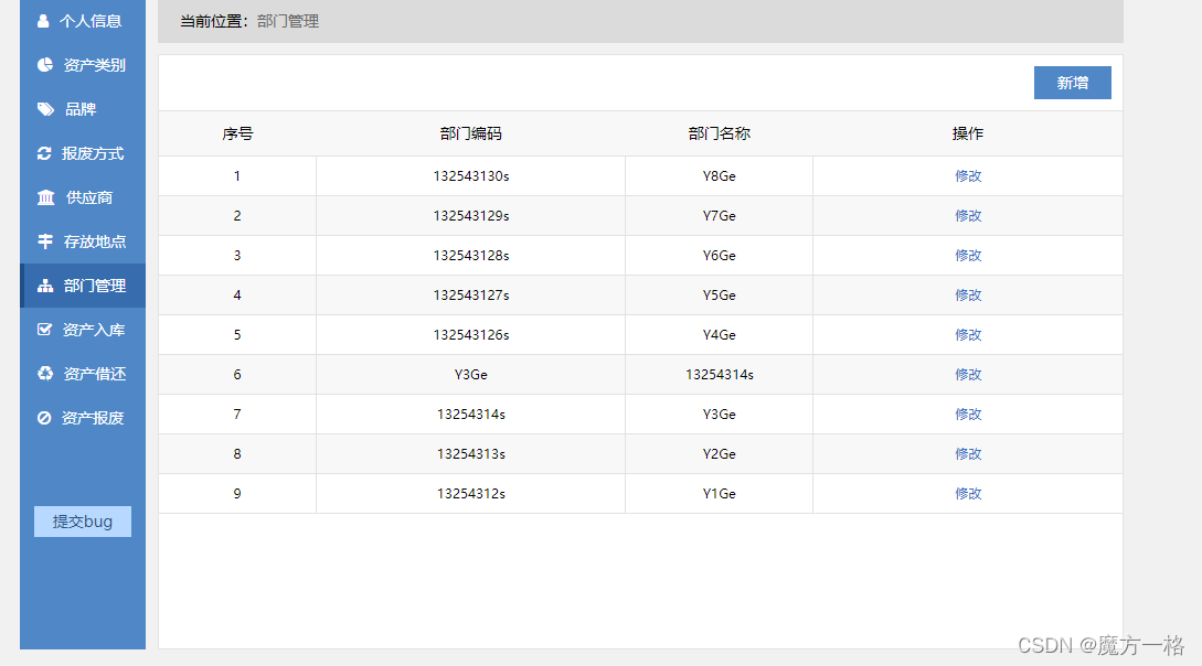 以下我要测试并写入数据(创建部门)的服务器页面(上面是我已经录制好的脚本)