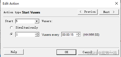 每个指定时间启动的虚拟用户数,图为每15秒启动一个虚拟用户