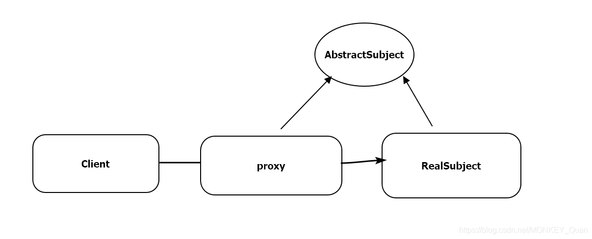 public class Client { public static void main(String[] args) { Host host=new Host(); Proxy proxy=new Proxy(host); proxy.rent(); } }简单的用图来描述一下