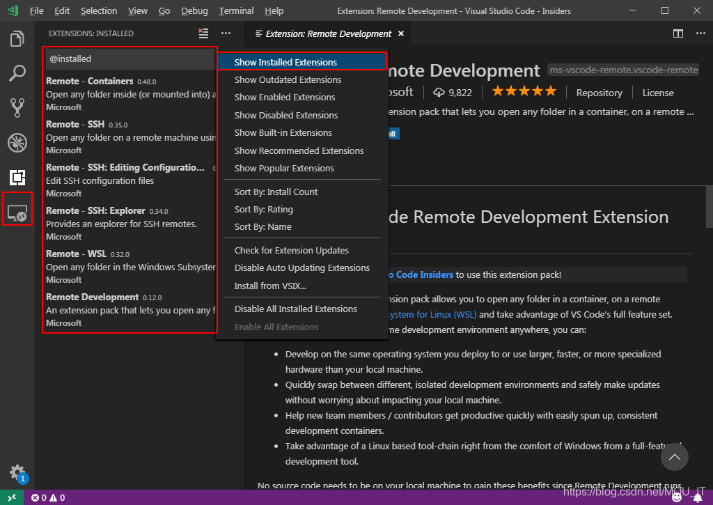 安装好之后,在扩展栏中输入@installed,可以看到已经安装好的插件: