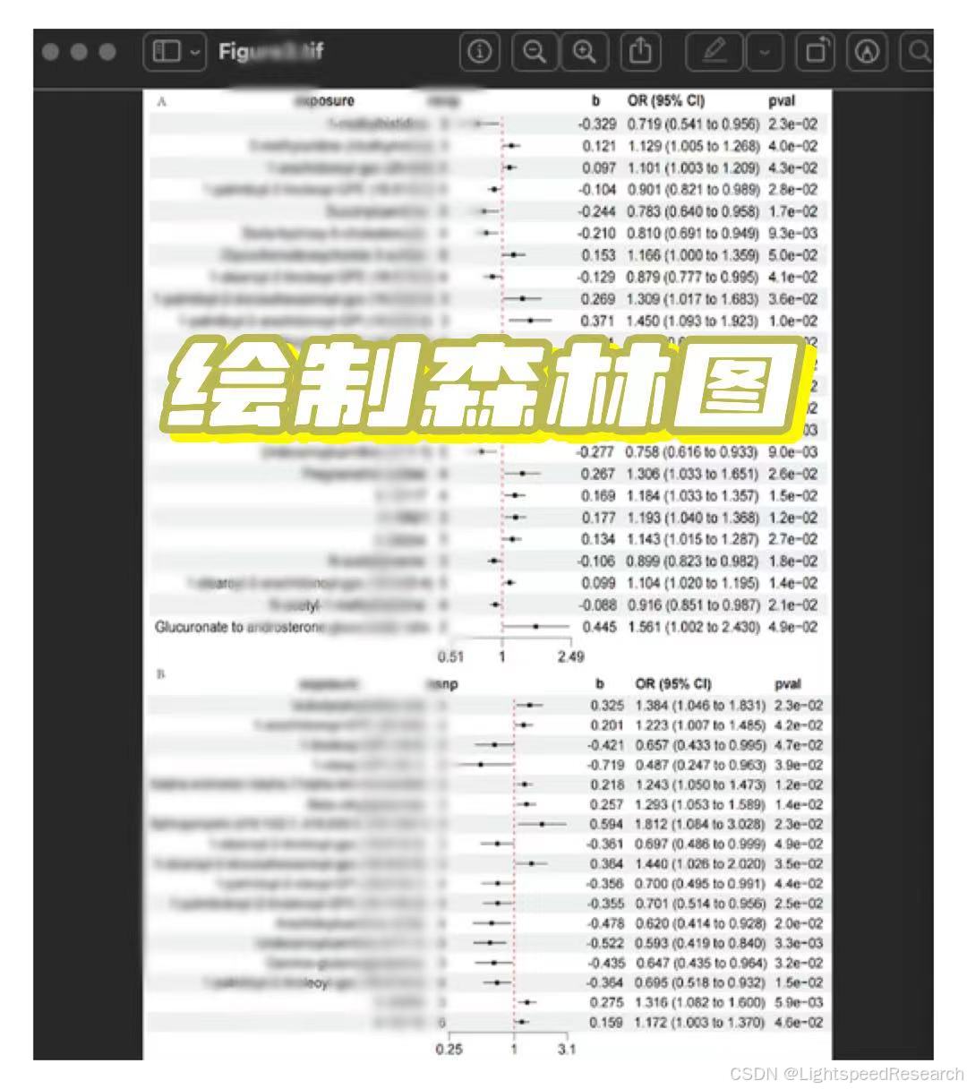 3.阳性代谢物筛选与后续分析:按要求挑出阳性结果,可以严格点。然后整理图片,直观展示结果。再做汇总森林图和表格。