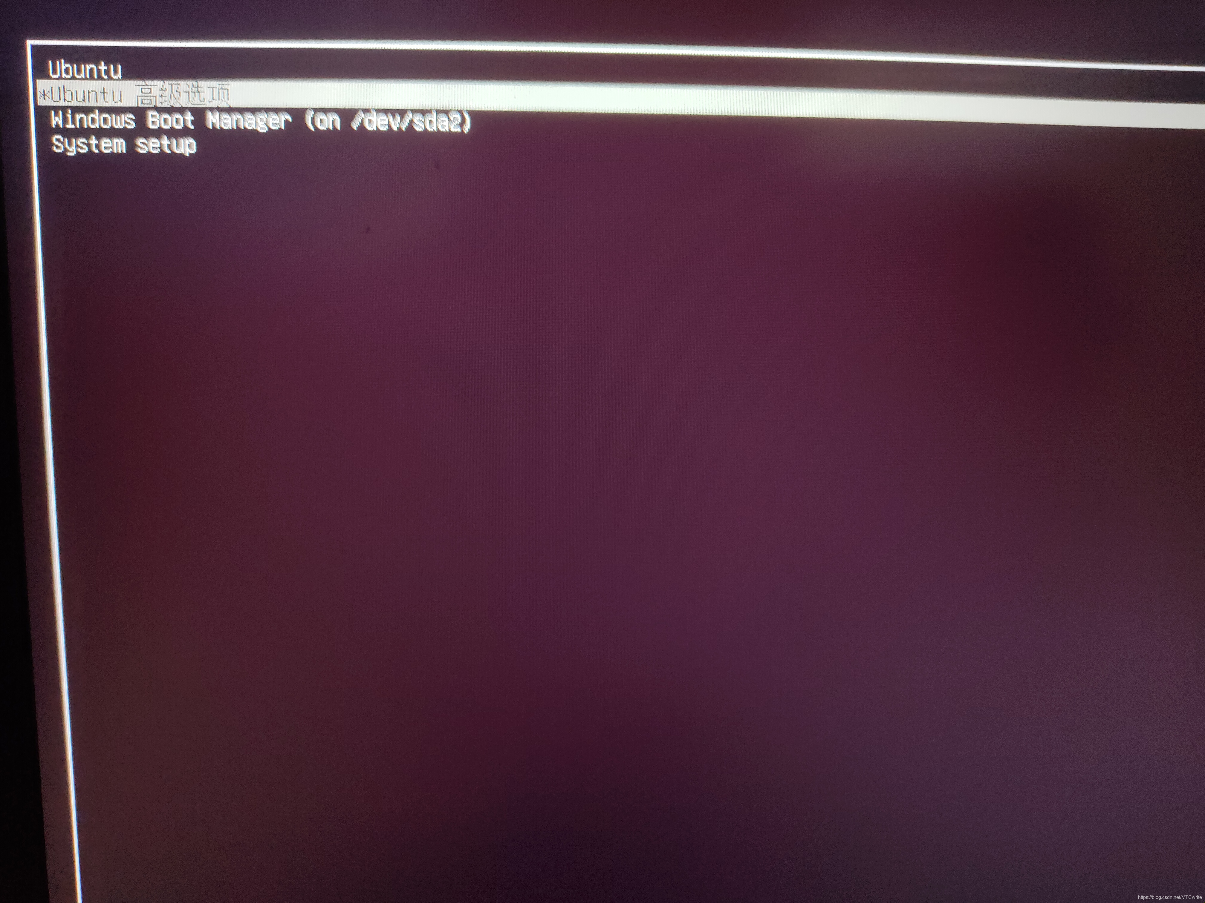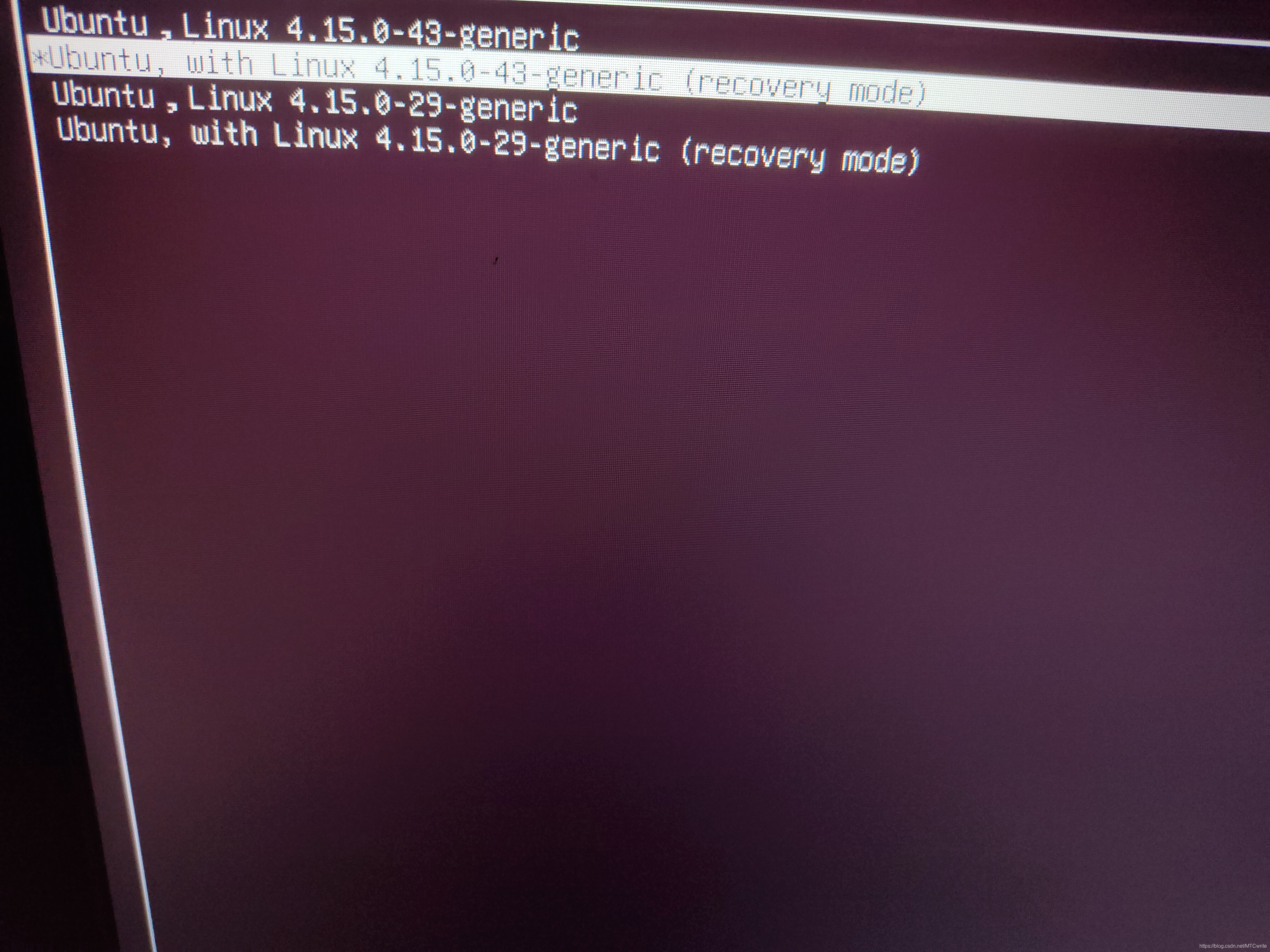 - 进入Ubuntu recovery mode ,我的电脑可以直接进入recovery mode,进入方法如下图;