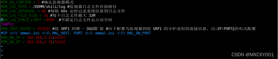 MON_INST_OGUID = 453331 #组 GRP1 的唯一 OGUID 值 #以下配置为监视器到组 GRP1 的守护进程的连接信息,以―IP:PORT‖的形式配置