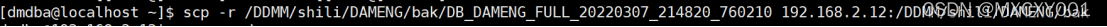 scp -r /DDMM/shili/DAMENG/bak/DB_DAMENG_FULL_20220307_214820_760210 192.168.2.12:/DDMM/shili/DAMENG/bak