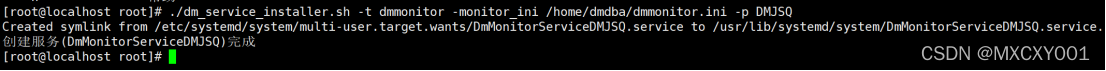 ./dm_service_installer.sh -t dmmonitor -monitor_ini /home/dmdba/dmmonitor.ini -p DMJSQ
