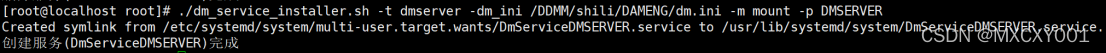 ./dm_service_installer.sh -t dmserver -dm_ini /DDMM/shili/DAMENG/dm.ini -m mount -p DMSERVER