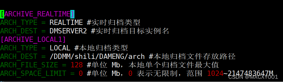 ARCH_DEST = /DDMM/shili/DAMENG/arch #本地归档文件存放路径