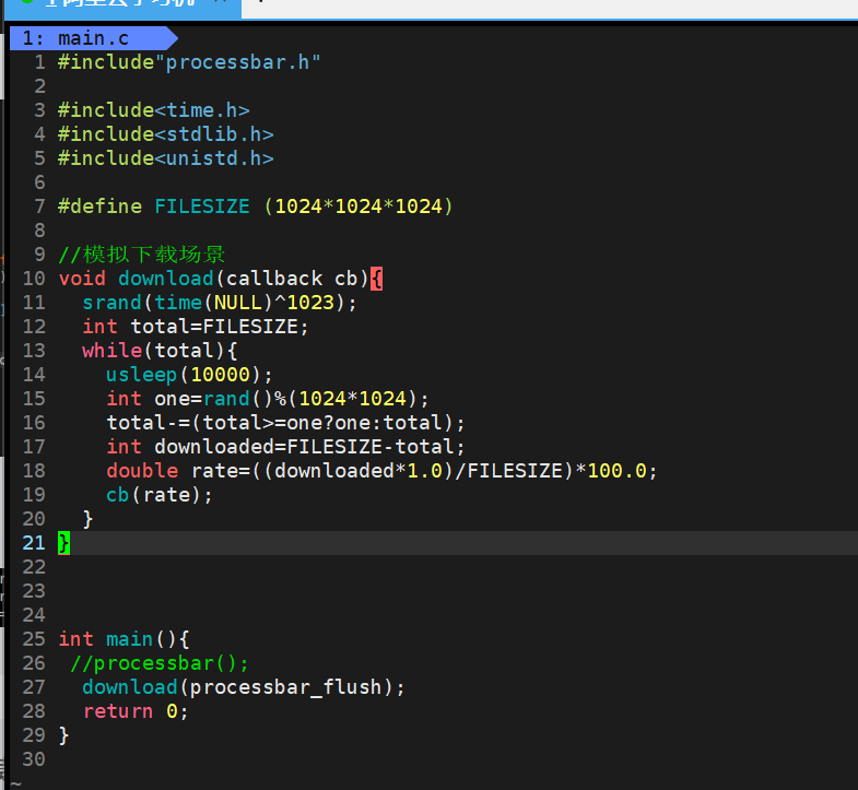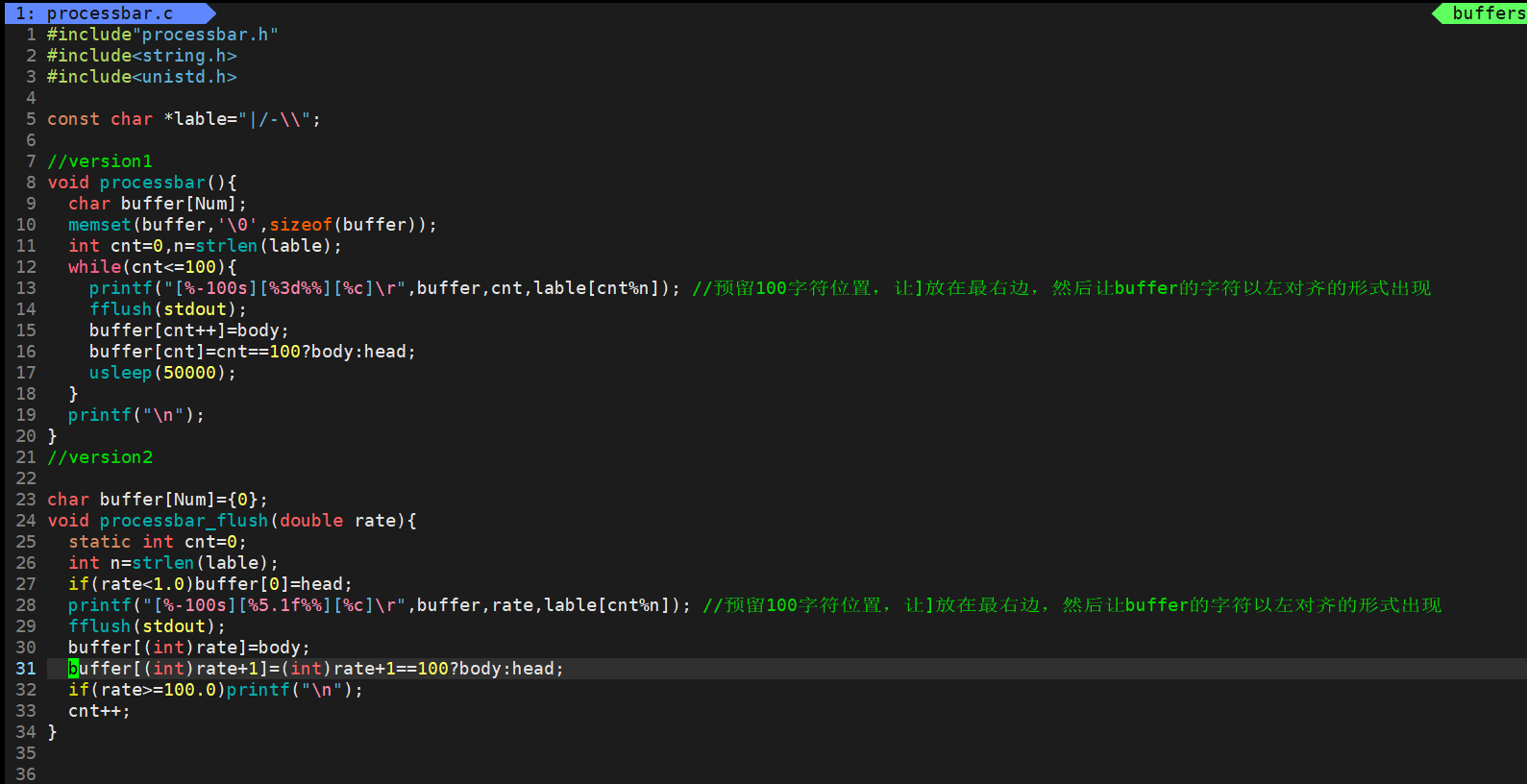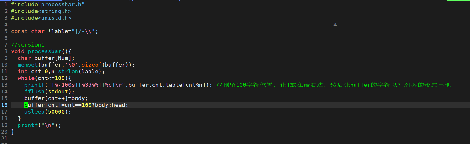 原理依旧是利用回车,只是这次是每次比上一次多输出一个字符,实现进度条增长的效果。