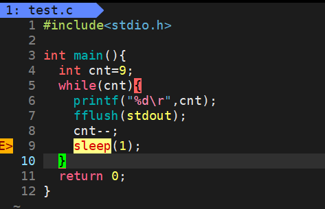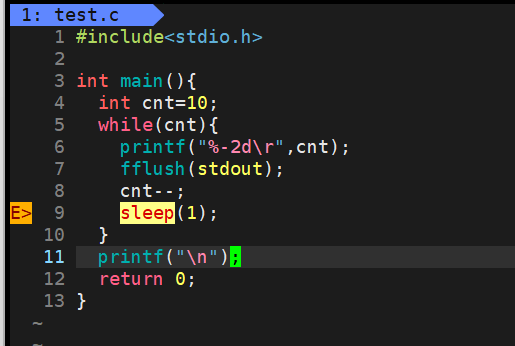 我们每次虽然可以做到覆盖,但是数字一直放在第二个字符处,这就是右对齐。printf("%-2d",cnt);就可以左对齐