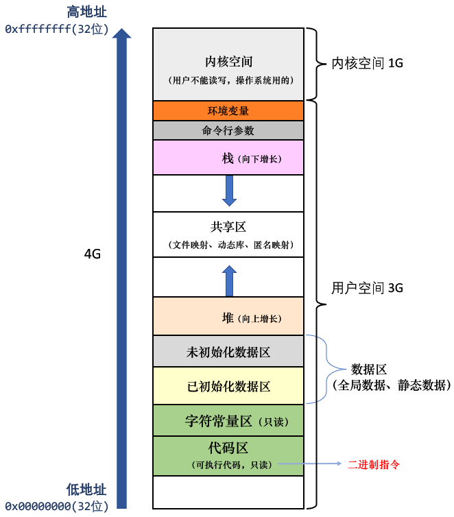 我们知道进程地址空间一般是4GB,而其中[0,3]GB都是用户空间,[3,4]GB都是内核空间