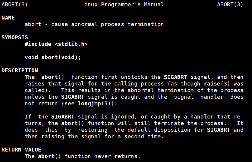 abort没有参数,就是给自己传递6号信号,SIGABRT