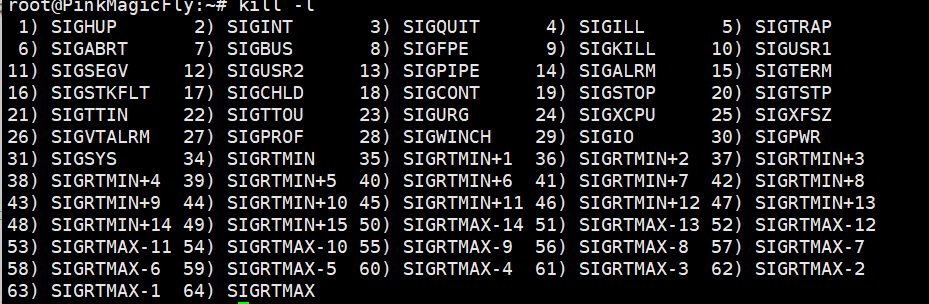 每个信号都有一个编号和一个宏定义名称,可以在signal.h中找到。