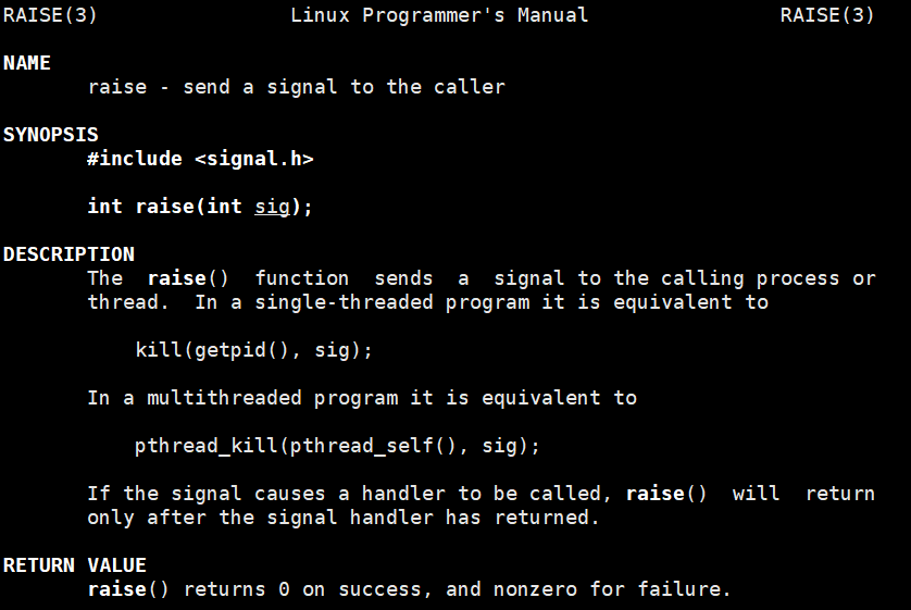 raise函数可以给当前进程发送指定的信号(自己给自己发信号)。