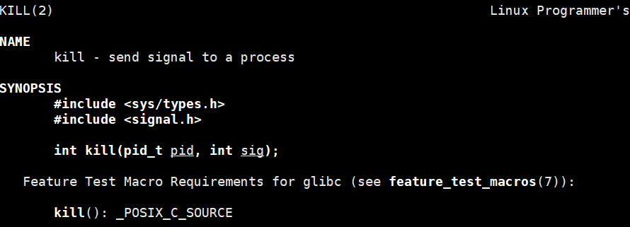 pid顾名思义,要接受信号的进程的pid,sig即发送的信号编号(或者信号名字)。
