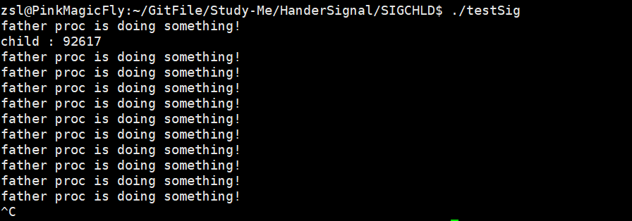 我们可以发现,这次我们处理动作手动设置为SIG_IGN,子进程会自动退出。