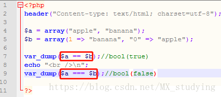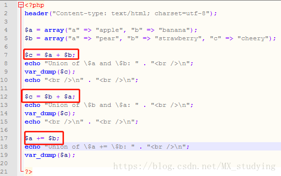 注意:+ 运算符把右边的数组元素附加到左边的数组后面,两个数组中都有的键名,则只用左边数组中的,右边的对应的建和键对应的值都会被忽略。