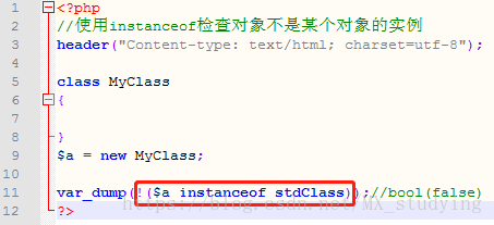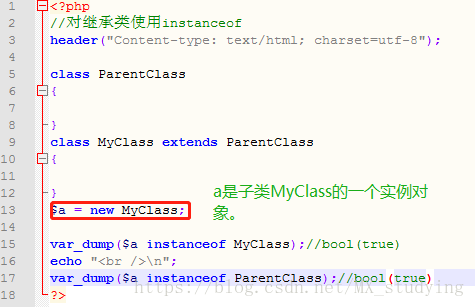 instanceof 用于确定一个 PHP 变量是否属于某一类 class 的实例: