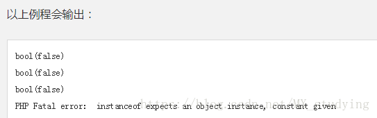 如果被检测的变量不是对象,instanceof 并不发出任何错误信息而是返回 FALSE。不允许用来检测常量。