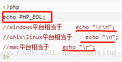 注意:PHP 中换行可以用 PHP_EOL 来替代,以提高代码的源代码级可移植性:unix系列用 \n;windows系列用 \r\n;mac用 \r。注意,也可以用“ . "<br />\n"”