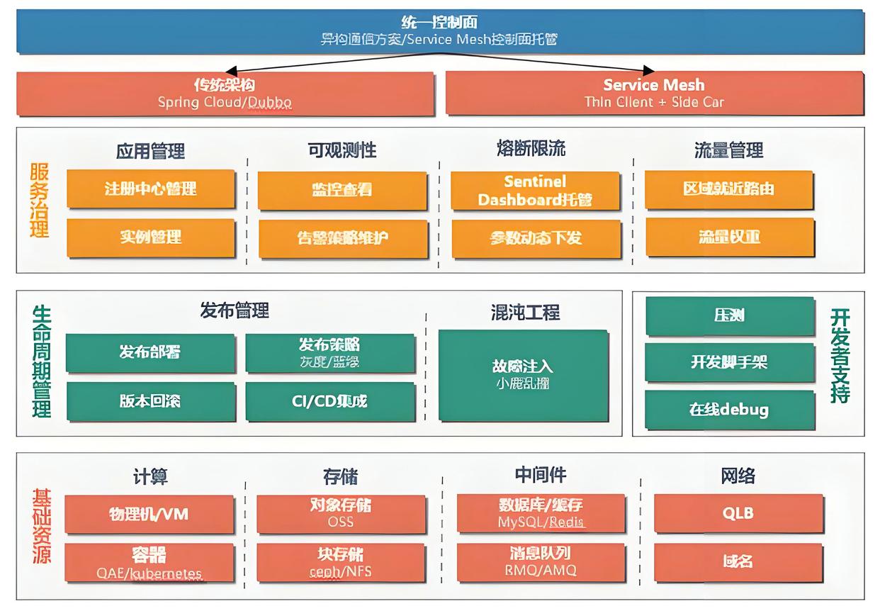 去中心化治理:独立开发部署,支持技术异构(Java/Go/Python)。