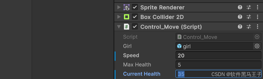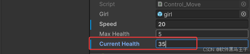 当脚本挂载到游戏对象上后,对于public类型的变量,或者使用了[SerializeField]特性修饰的private变量,我们可以在 Inspector 面板中直观地对其进行赋值。例如:
