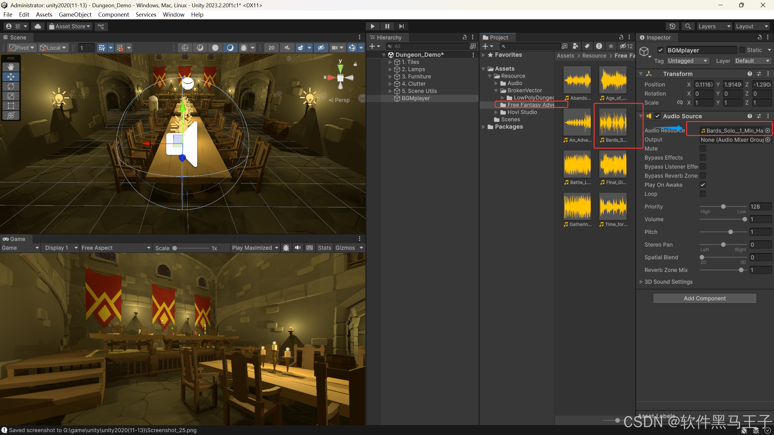 (1)创建一个空物体BGMplayer。添加Audio source组件。