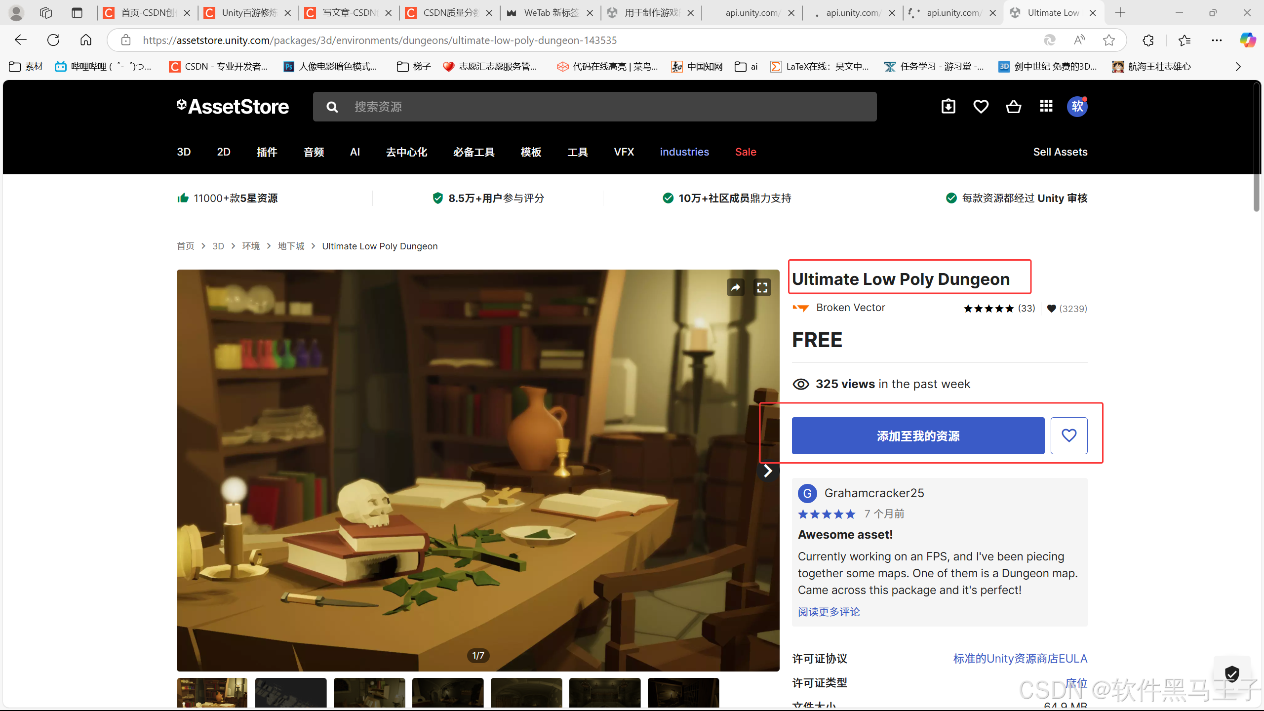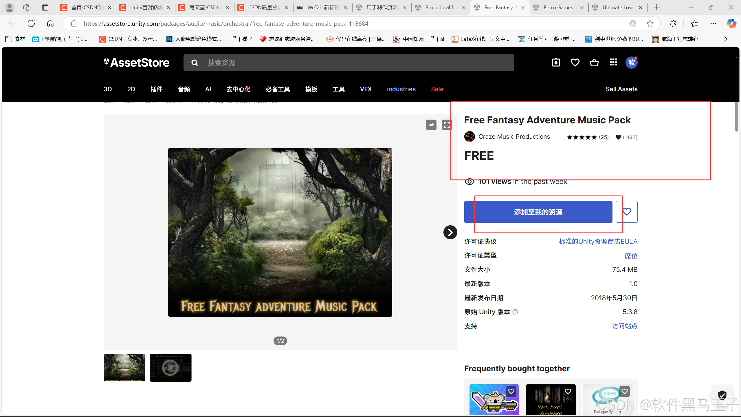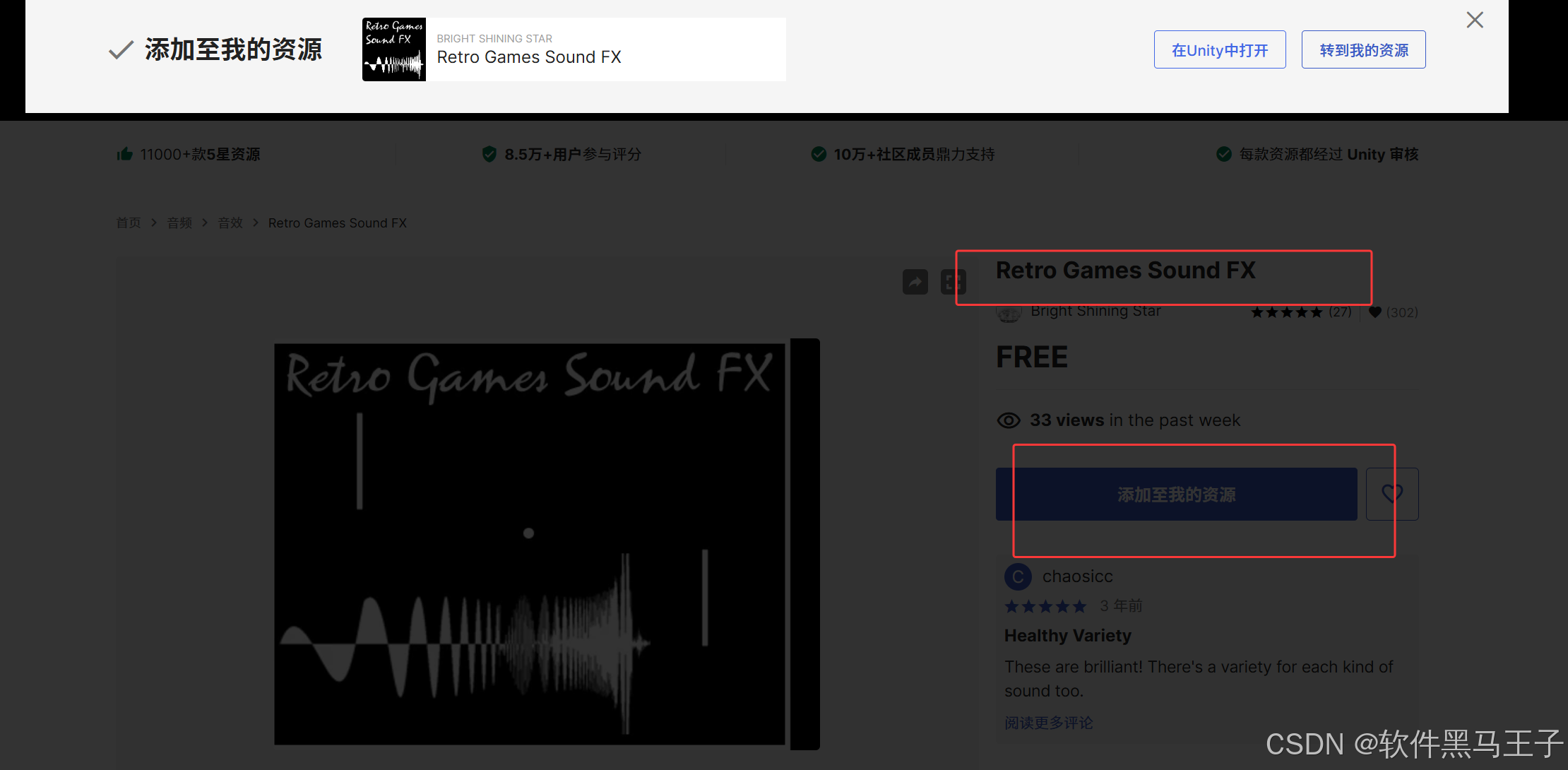 从上述提供的 Unity Asset Store 链接进入对应页面,点击下载按钮,将所需的场景、角色、音乐和特效资源下载到本地。