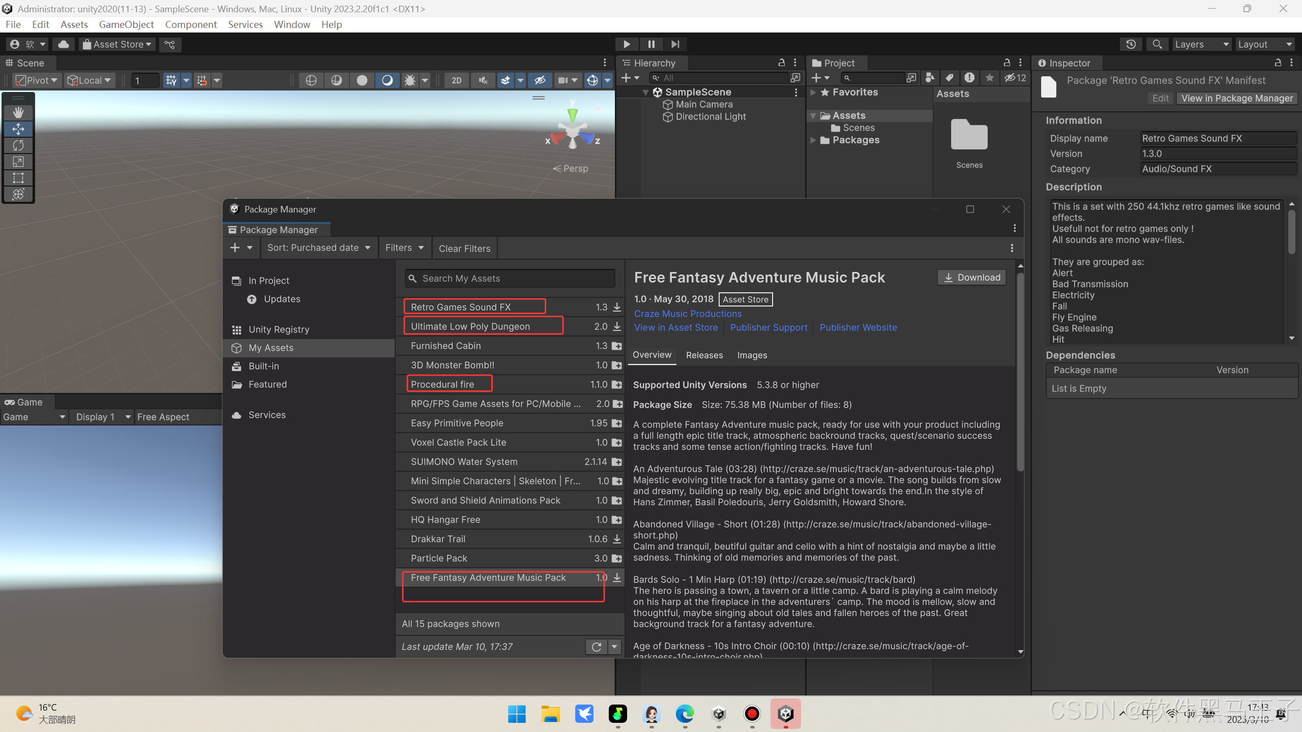 (2)将Free Fantasy Adventure Music Pack/挂载到组件上面。