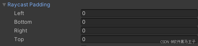 - Left、Bottom、Right、Top:这四个参数用于设置射线检测的内边距。图中均为 0,表示射线检测范围与 Image 实际显示范围一致。在一些需要精确控制交互区域的场景中,如多个重叠的图片,可通过调整这些值来避免误触发交互。