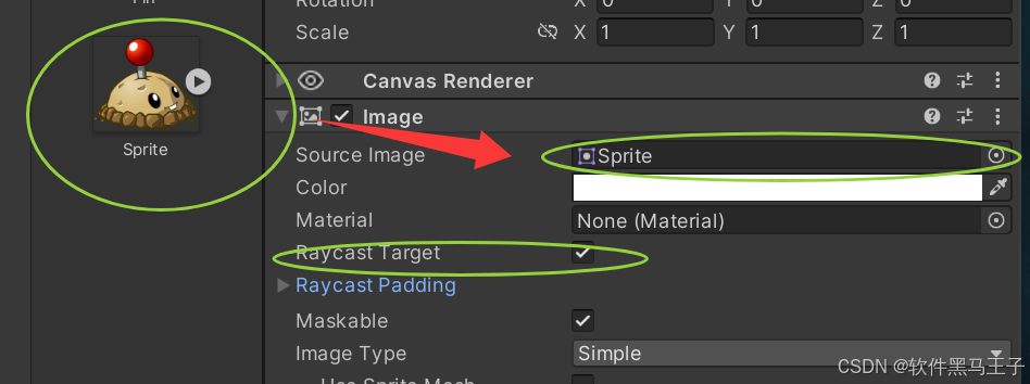 - 设置交互:勾选 “Raycast Target”,为 Image 添加交互功能。